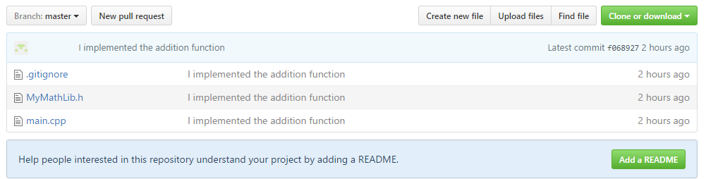 We now want to start to create our math library. You can copy and paste what you see below or download the main and header. Place these files in your local Git repository.